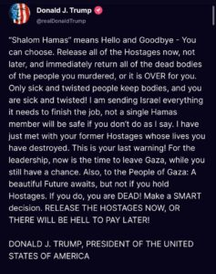 ترامب يوجه رسالة تحذيرية “أخيرة” لحماس بشأن المحتجزين الإسرائيليين!